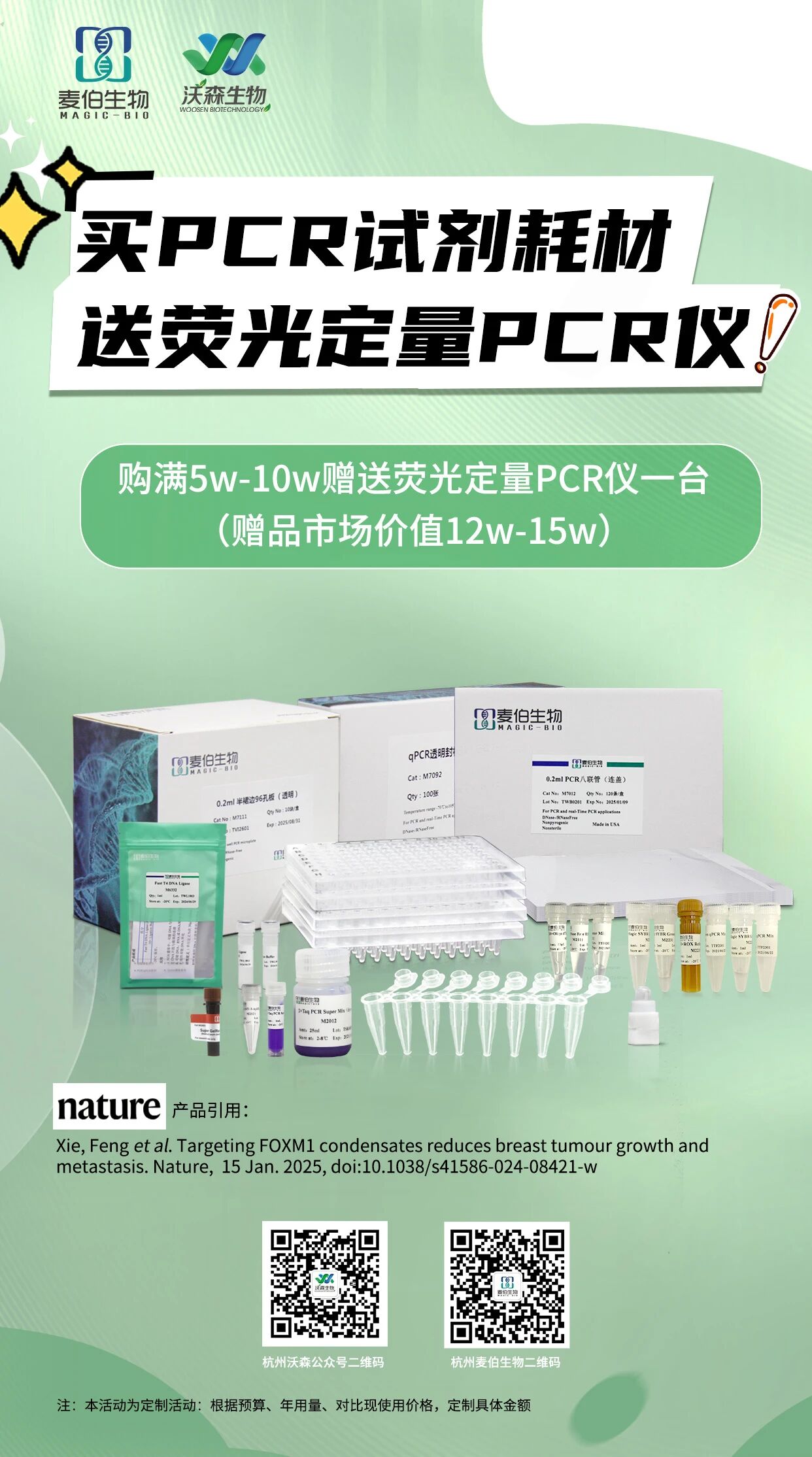 我們?yōu)槟鷾蕚淞艘环葺p松體驗完整qPCR工作流的優(yōu)惠活動—“買PCR試劑耗材免費獲取一臺熒光定量PCR儀”,希望能助您更簡單、更經濟地組建自己的理想實驗配置!