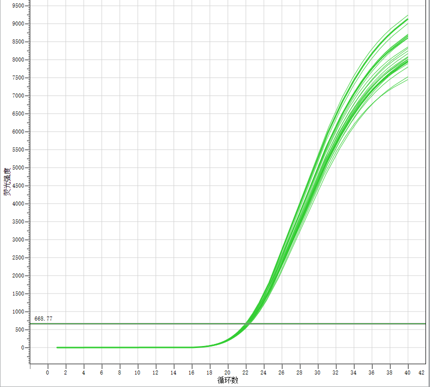 以小鼠cDNA為模板,設置30個復孔,結果顯示Magic SYBR Green qPCR Mix擴增復孔重復性高